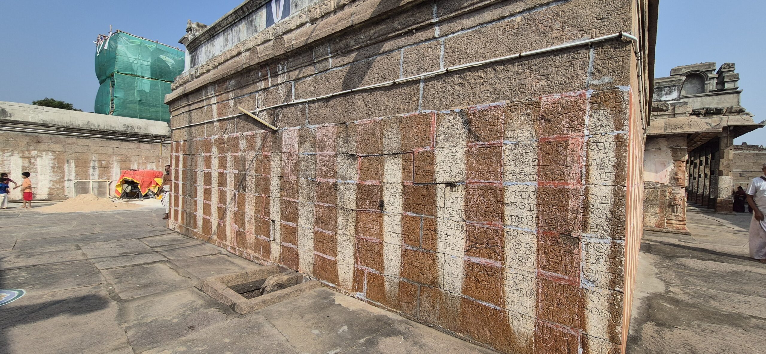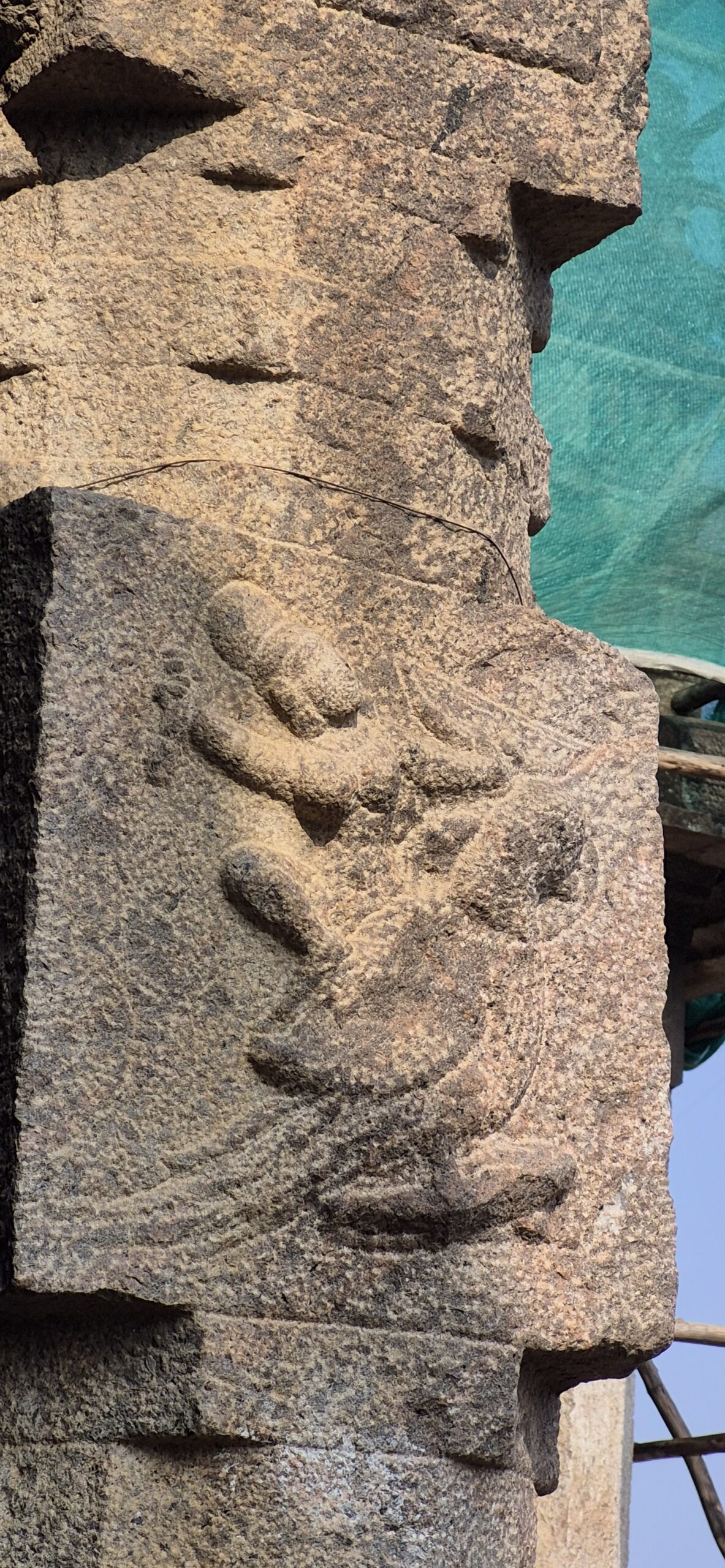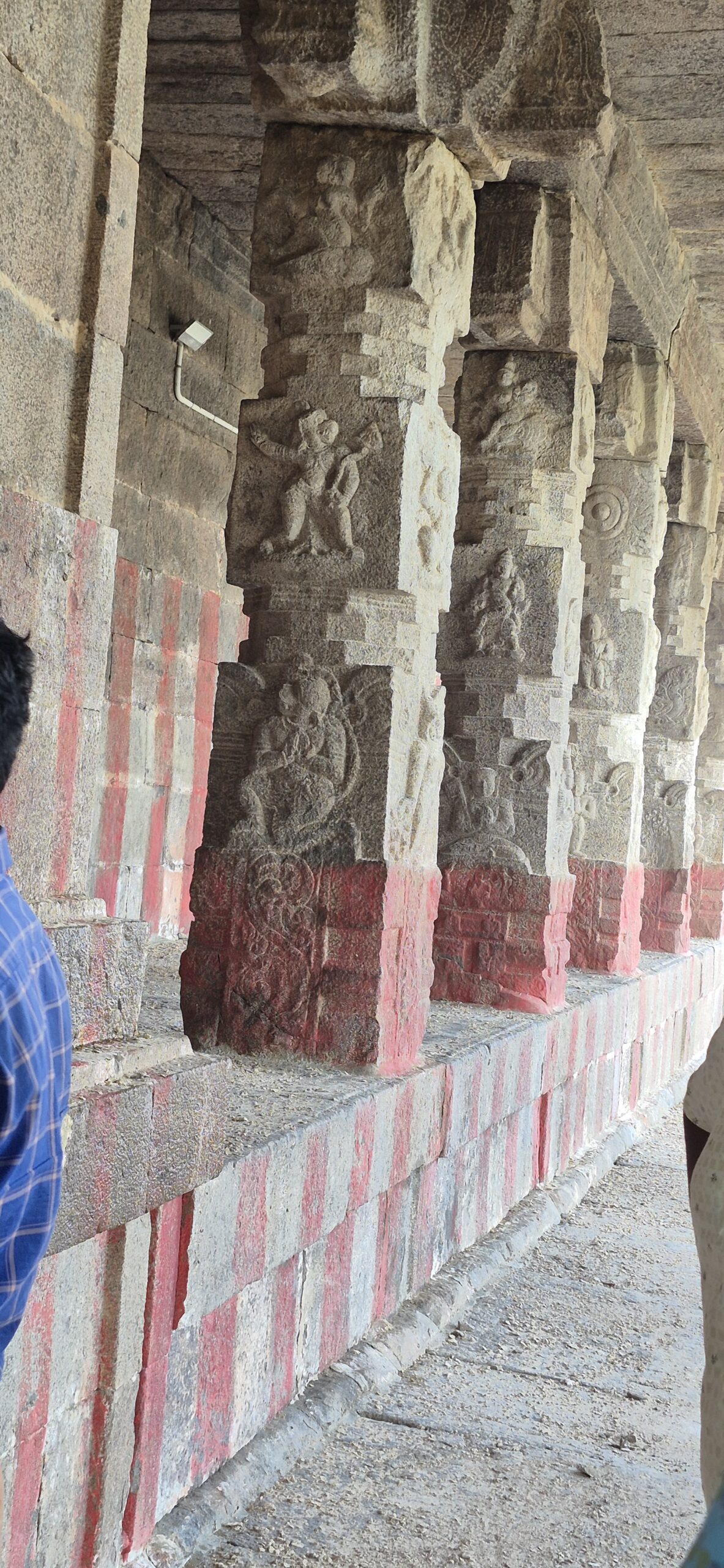 We walked to the outer prahāra where the 20 verses of the Hanumath Vimsathi was etched into stone — poetry born of crisis, now immortalised in granite perhaps by a well-wisher at a later date. I reached out and touched the wall gently. History felt tangible beneath my fingers. Must look this up and get to know the essence of these verses, I made a mental note.